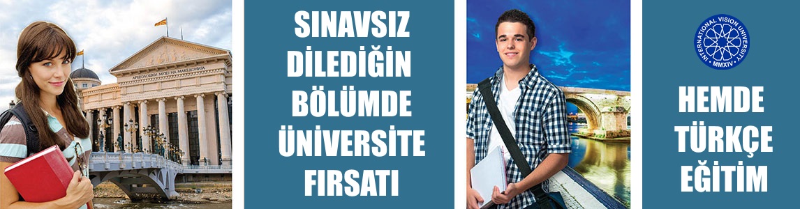 2003’te Bologna Sürecine dahil olan, 2005’ten beri Avrupa Birliği adaylığını sürdüren, yaklaşık 6 asır Türk hakimiyetinde kalan ve 2 milyon nüfusunun yaklaşık %5’i Türk olan Makedonya'da Vizyon Üniversitesi sınavsız dilediğiniz bölümde bugün sizleri üniversite eğitimi için davet ediyor.